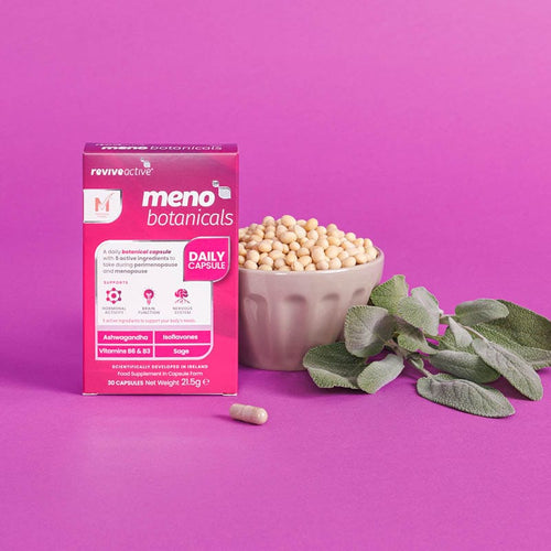 Meno Botanicals is a single daily capsule providing a unique blend of botanicals and essential vitamins designed to support women through all stages of the menopause. As each journey is unique, this product offers support through the transitional phases.